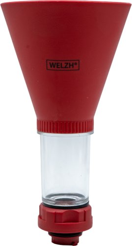 The Slow Fill Oil Funnel Filling Device features a lower transparent chamber that displays the oil as it flows down to the engine.